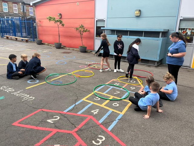 Playleading enables trained Year 5 and 6 pupils to support younger children in active, purposeful play during lunchtime. Playleaders plan and organise a range of simple games and activities, helping pupils develop social skills, teamwork, and confidence. They encourage fair play, take turns, and help resolve minor disagreements in a calm, positive way. Through their role, Playleaders model kindness and inclusion, ensuring that no child feels left out. This responsibility strengthens their communication and leadership skills while creating a safe, fun, and structured play environment for younger pupils.